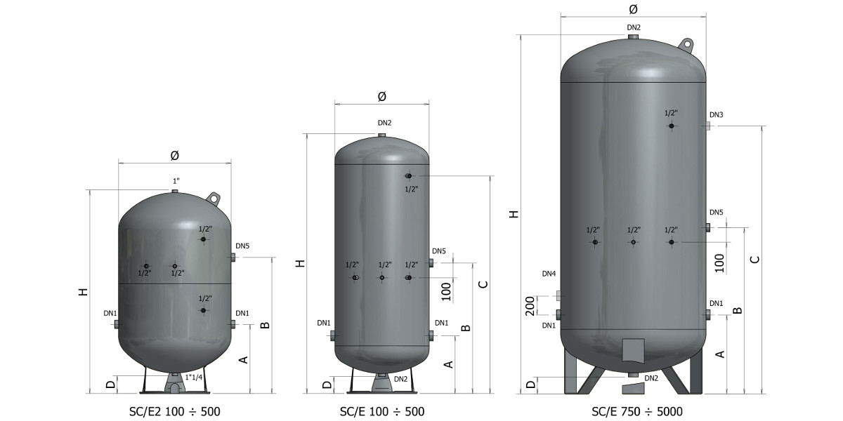 SERBATOIO ZINCATO VERTICALE S/C TIPO BASSO LT 100-ELBI