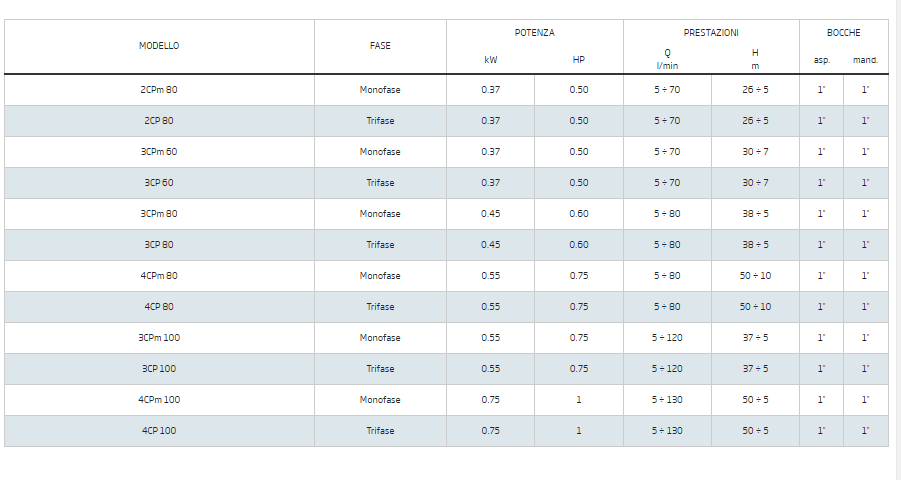 ELETTROPOMPA MULTIGIRANTE MONOFASE HP0,60 3CPM80C