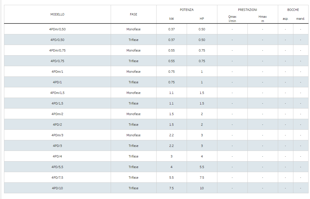MOTORE SOMMERSO 4" HP.2,00 4PD/2 TRIFASE
