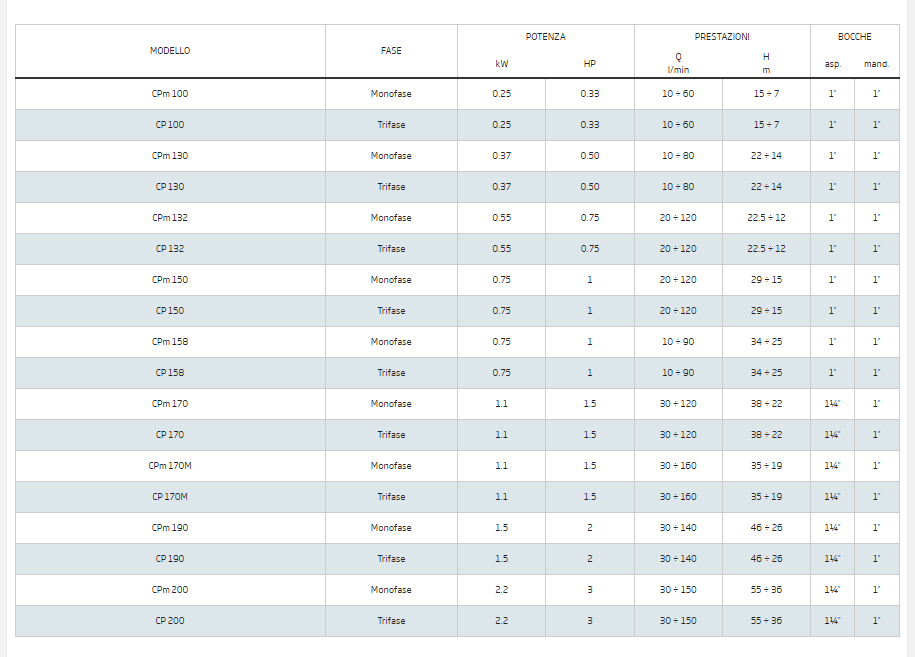 ELETTROPOMPA CENTRIFUGA HP0,50 CPM130