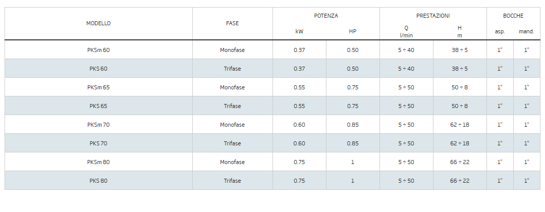 ELETTROPOMPA MONOFASE HP 0,75 PKSm65