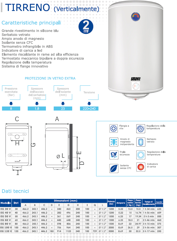 SCALDABAGNO SMAVIT TIRRENO ELETTRICO 2ANNI LT30