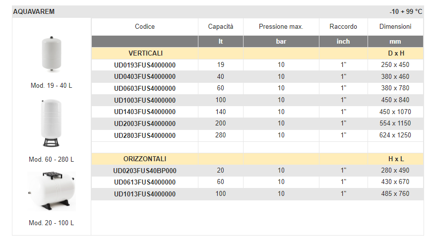 AQUAVAREM CON MEMBRANA BUTIL. LT.40 GARANZIA 5 ANNI